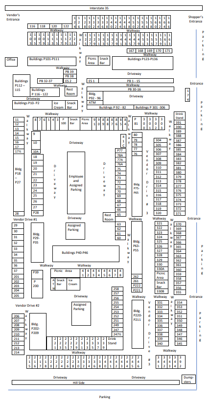 Are you a vendor looking to sell your wares at our flea market facility? Contact our offices today! Our offices are open on Monday through Friday 8:00 AM to 5:00 PM. Market Hours are Saturday and Sunday from 7:00am to 5:00pm. Check out our spacing and pricing below and contact us today to discuss you selling your art work, antiques and 2nd hand wares with us at our facility that's been around since 1978! We look forward to speaking with you soon! Call (210) 651-6830